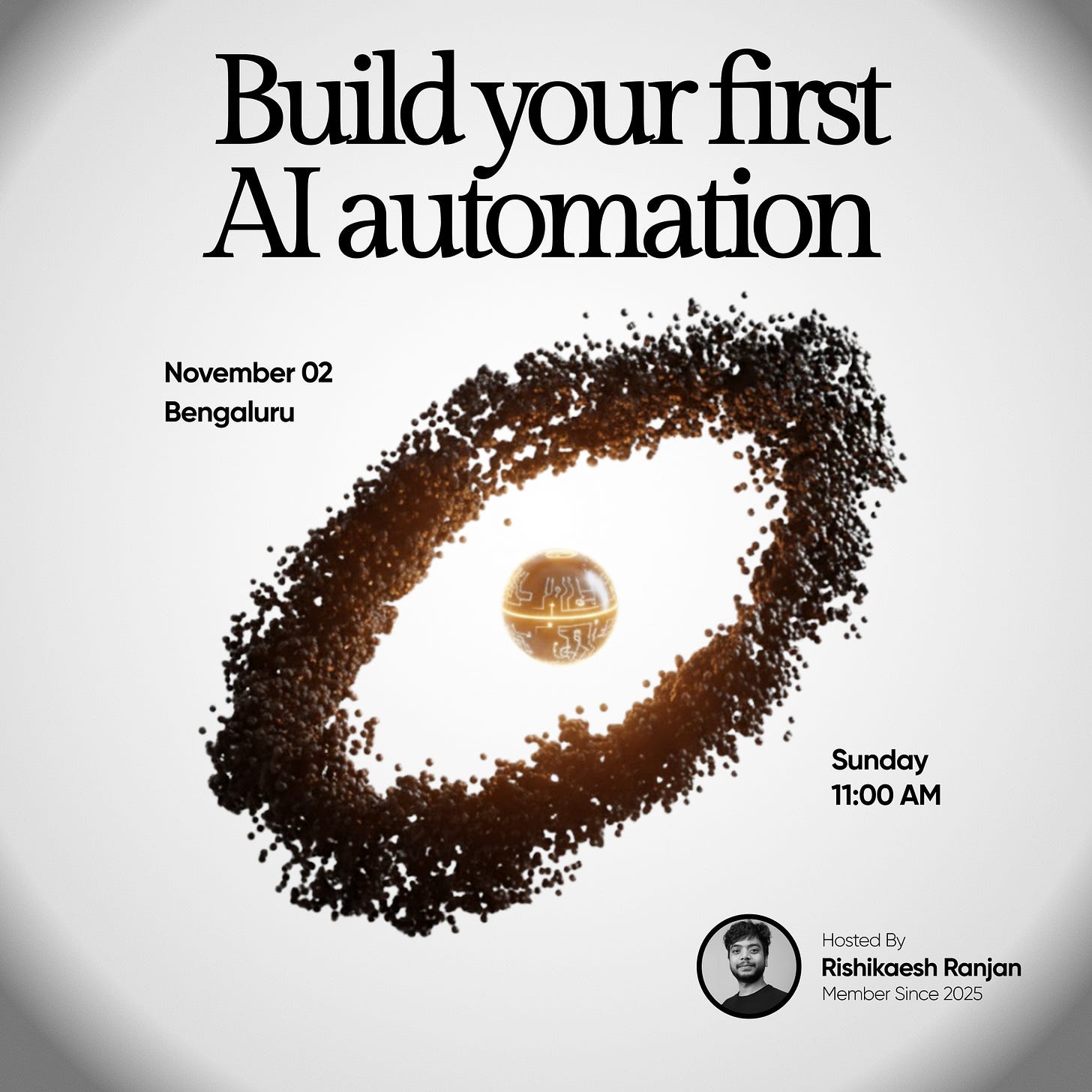 Build your first real automation, no code or AI experience needed. In this hands-on session, you’ll turn a repetitive task into a smart workflow using tools like n8n or Relay. Walk away with one working automation that runs on its own and saves you hours every week. Hosted by Rishikaesh Ranjan.